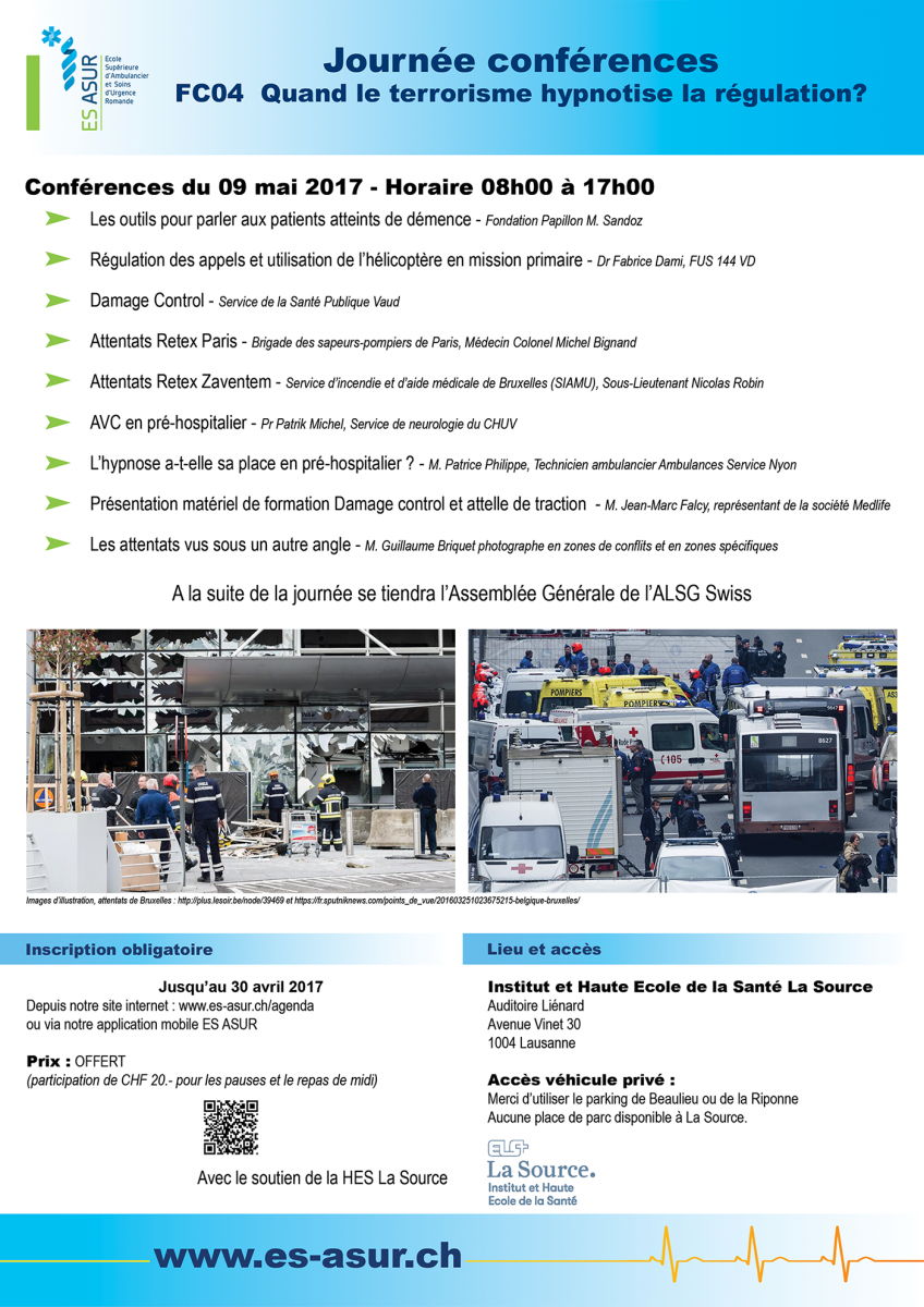 L’ES ASUR a le plaisir de vous annoncer sa journée conférences du 9 mai 2017 sur le thème : « Quand le terrorisme hypnotise la régulation? » Retrouvez toutes les informations et le programme de la journée sur le flyer c…