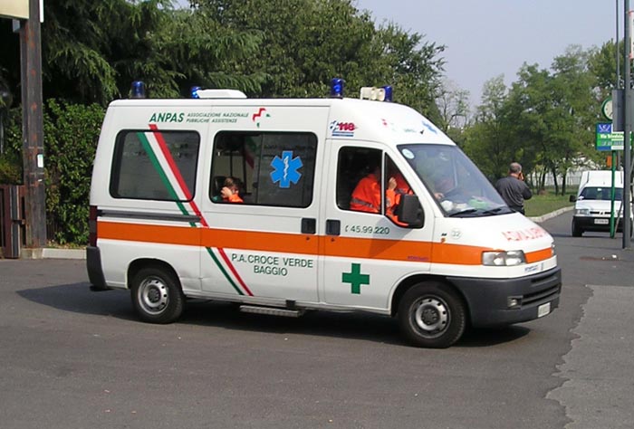 ambulanza della croce bianca milano per il servizio di soccorso 118